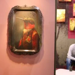 The Ibride creations associate with talent graphic design and object design. Very original, this service top is also a framework as one can put to the wall. It seizes himself portraits decorated with moldings and embroidered families manners worsens. Hung to the wall, this is a superb picture to the romantic perfume. Put on the table, this is a very deco top !