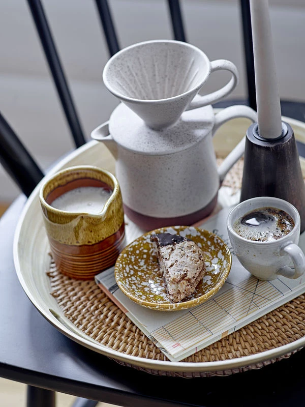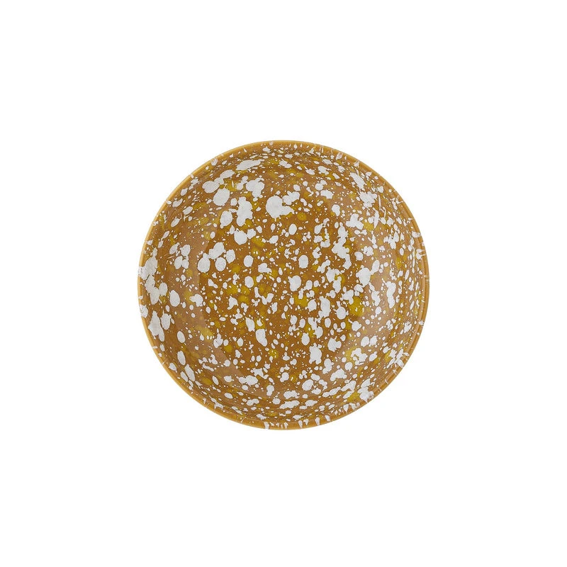 Vintage stoneware is currently THE trendy material to have… This magnificent enamelled stoneware dish displays a warm, sunny ochre hue. The irregular white speckled pattern reminds us of paint splashes. An arty, graphic print, perfect to brighten up your table! This neo-rustic style dish reminds us of an antique object unearthed in a flea market. Due to the nature of enamel and the fact it’s a handcrafted item, colour variations may occur.