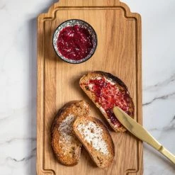 | Characteristics | Hand-made in the Netherlands – Long service life – Leather hanging cord – Cutting board / serving plate – Juice groove on one side – Can be used on both sides – Hand-wash |