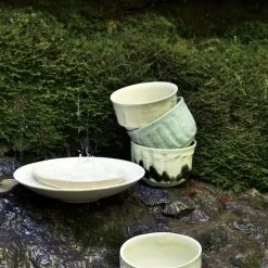 Each piece in the Dashi collection is entirely handmade in the Jars Céramistes workshops in Anneyron in Drôme. Since its founding by Pierre Jars in 1857, the profession of earthenware making has been passed down from generation to generation in the Jars factory: this centuries-old know-how has raised Jars to the rank of French Living Heritage Company (EPV label). Created by designer-ceramicist Pierre Cazenove, the Dashi collection displays a rustic chic look that honours the raw material, starkness and the object in all its simplicity. Dashi celebrates the art of the imperfect object, the spectacular marriage of raw earth and ash enamels. From these unique pieces emerges a poetry of material, a mix of strength and softness. These creations correspond perfectly to the emergence of the imperfect, which illustrates a marked return to respect for nature, including its bumps and rough patches. Stoneware is arguably the strongest and most natural ceramic. Unlike earthenware, terracotta clay is waterproof and non-porous, even without enamel. As a result, it keeps food hot or cold for a long time. Real treasures, the enamels are made from plant ash. Reconstructing an enamel with ashes and then standardising it is a long and difficult job. It’s at the cost of this artisanal work that the ashes give these colours and these particular materials, a unique depth of enamel. This know-how, like all the changing earthenware in this profession, enriches the magic of firing. Enamels make up an infinite palette: lively, deep, crystallised, crackled, matt or shiny tones. Dipped with a ladle, applied with a brush on an outline, or sprayed delicately by hand, the craftsman’s work is always beautiful and precise. During so-called Grand Feu firing, the enamel fuses with the stoneware. It then reveals its nuances and effects, its subtle, fascinating vagaries. Each item in the Dashi collection is unique: “neither quite the same, nor completely different”. A beautiful object that knows how to stand the test of time and last: first of all through its natural, solid material, but also and above all because it requires time and patience to take shape. Precise, subtle actions.