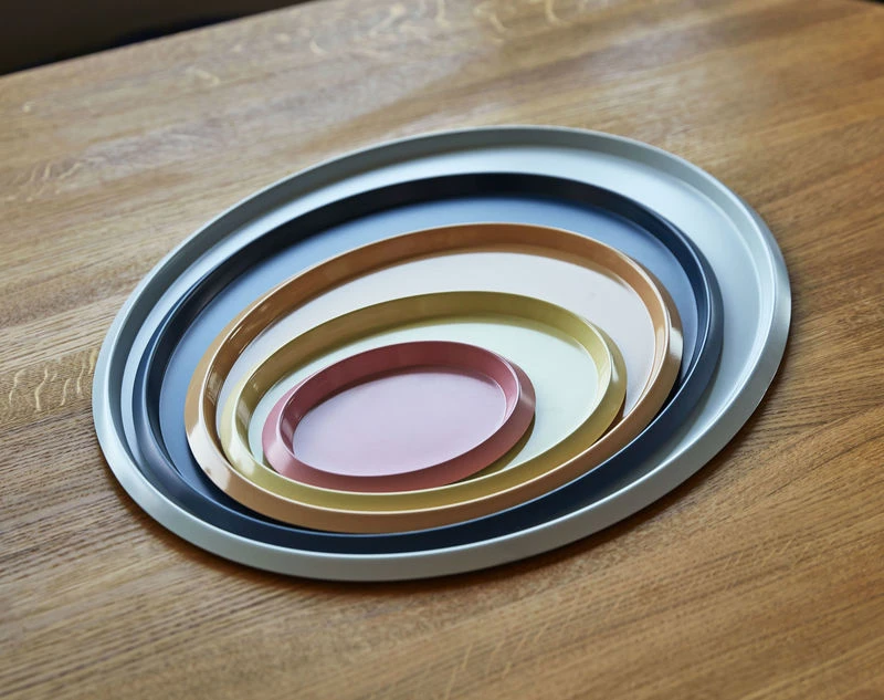 The Swedish designer, Clara von Zweigbergk, combines her innate sense of colour with a simple oval shape to create a series of elegant and distinctive steel trays. Available in a wonderful range of modern hues, the different-sized trays stack and slot into one another wonderfully. These trays are perfect for serving coffee, displaying little cakes, etc. You can also use them as a trinket bowl to organise your small items (office accessories & jewellery). The symmetry of the forms, the proportionality of the dimensions and the diversity of colours create a superb visual effect. It's up to you to create your own compositions of colours and shapes: imagination is all it takes! The Elipse trays can slot into one another, but can also be used perfectly well on their own.