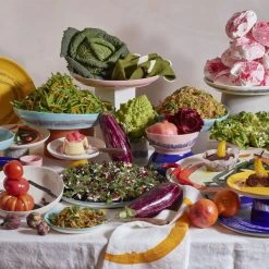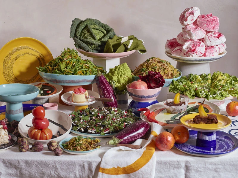 Cheerful and colourful, Feast is the first tableware collection designed by the famous Anglo-Israeli chef Yotam Ottolenghi, in collaboration with Belgian manufacturer Serax. Owner of six restaurants in London, Ottolenghi is a real pop star in the kitchen! A champion of plant-based cuisine, author and charismatic world star, he inspires gourmets around the world with his delicious best-sellers and accessible recipes with their multiple influences. For this project, the chef teamed up with Italian artist Ivo Bisignano, his lifelong creative partner. A polymorphic artist, Ivo Bisignano began his career with fashion illustration before focusing on media as varied as sculpture, painting, video and animation. “We have been working with Ivo for a few years. Whether it’s a napkin, a logo for a menu or wrapping for a Christmas present, he always finds original ideas, full of humour and humanity. Whatever the medium, his art is authentic, expressive, daring, joyful and colourful. Qualities we strive for in our cuisine”, explains Yotam Ottolenghi. Yotam Ottolenghi created Feast as an invitation to share precious moments over a convivial meal with family and friends. The variegated pieces mean you can create festive tables that are a bit eccentric: a great way to discover the relaxed, slightly offbeat atmosphere that characterises Yotam Ottolenghi’s cuisine so well. “We tried to tell the Ottolenghi story through objects. A story of tension between down-to-earth and sophisticated, passion and refinement, tradition and novelty. Obvious opposites that coexist in dynamic harmony.” With its abundance of colour, abstract plant prints, swirling patterns and positive vibes, Feast reflects everything its creator embodies. Intense and exuberant, radiant and sunny, the Fest collection is an explosion of colours echoing the chef’s recipes, those Mediterranean colours which are an integral part of his personal history. Designed around the letter “O”, one of Yotam Ottolenghi’s obsessions, the collection also draws on the ubiquitous place given to vegetables of all kinds, another central element in the chef’s cuisine. “Working with Ivo, we knew from the start that the collection would be an explosion of colours echoing the preparations we serve up, always layered and contrasted. There isn’t just one type of Ottolenghi recipe or preparation, just as there isn’t just one type of plate in Ivo’s collection”, adds Yotam Ottolenghi. Yotam Ottolenghi on his collaboration with Serax: “With Ottolenghi, it was clear to all of us that for our first official collection of plates, we needed something unusual, contemporary and aesthetic. But also totally usable to serve up our preparations. Serax was an absolutely incredible partner, giving our creativity free rein, certain that we’d be able to translate Ottolenghi’s philosophy into beautiful objects. They supported and encouraged us throughout the process. It was a most enjoyable collaboration, a dream come true.”