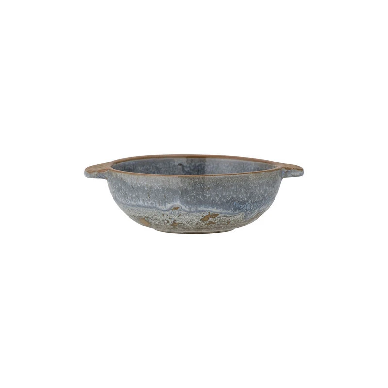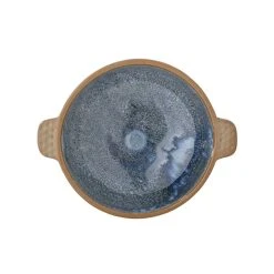 An authentic and raw style for this bowl with an irregular mottled finish. Hariet is a stunning handcrafted piece, made from sandstone with a unique, multicoloured enamel. With its two small handles, it is practical for presenting tapas and small plates. PLEASE NOTE Given the handcrafted nature of the reactive enamel, there may be slight variations in colourings.