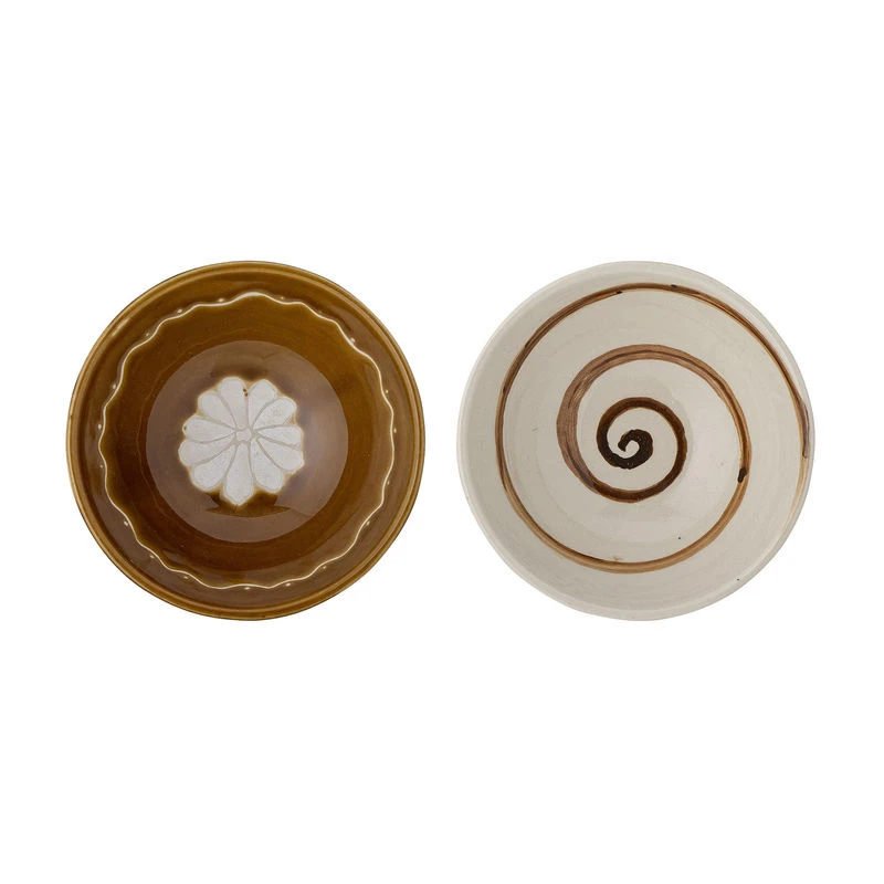 Countryside chic is guaranteed with these two stoneware bowls and their authentic style. With warm colours, the inside of the bowls is decorated with hand-painted patterns. They’re perfect for presenting sweet and savoury snacks.