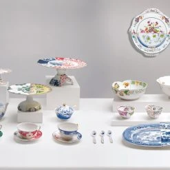“This dinnerware project designed by Ctrlzak collective reflects on the historical production of Chinese and European Bone China and its centuries of fertilization between western and eastern aesthetics. Produced in Tangshan, the renowned “”capital of Bone China, refined by hand, the piece decorations are sliced in half, creating new hybrids that juxtapose scenes and themes interpretated in the respective cultural imaginary. Bone China is a type of porcelain that is composed of bone ash, feldspathic material and kaolin. Contemporary forms to symbolize a complex past.”