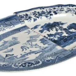 “This dinnerware project designed by Ctrlzak collective reflects on the historical production of Chinese and European Bone China and its centuries of fertilization between western and eastern aesthetics. Produced in Tangshan, the renowned “”capital of Bone China, refined by hand, the piece decorations are sliced in half, creating new hybrids that juxtapose scenes and themes interpretated in the respective cultural imaginary. Bone China is a type of porcelain that is composed of bone ash, feldspathic material and kaolin. Contemporary forms to symbolize a complex past.”