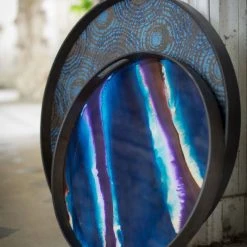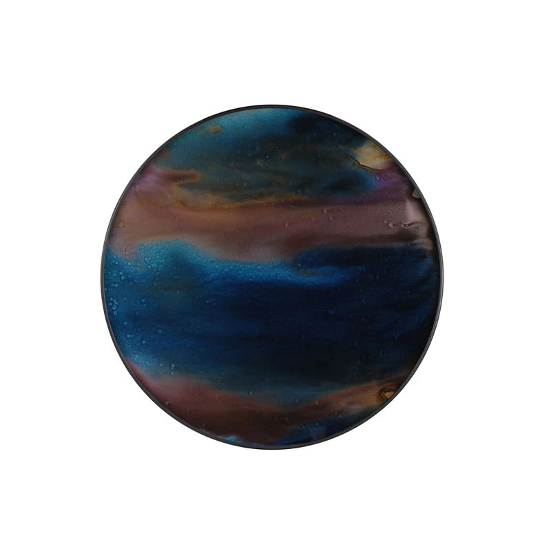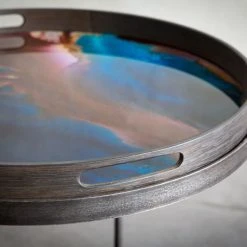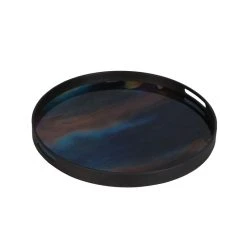 Indigo Organic Tray – / Ø 48 Cm – Wood & Hand-painted Glass – Ethnicraft