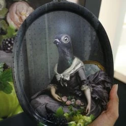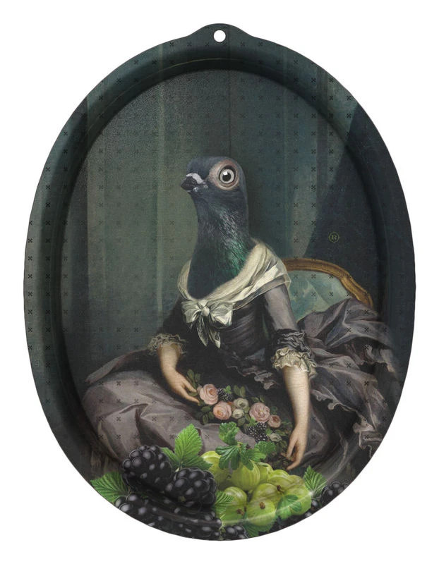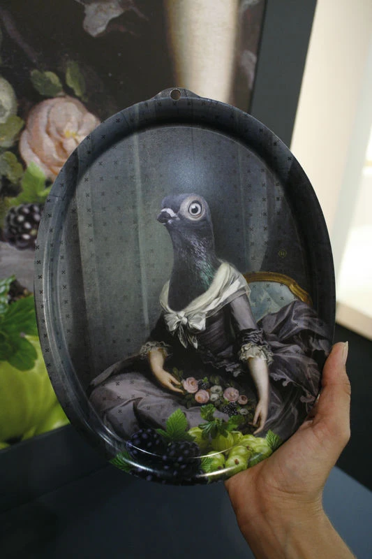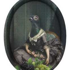 | Characteristics | Oval portrait – Sat pigeon-woman in evening dress / foreground still life blackberries and gooseberries – It resists to the heat and to the water -Supplied wall-mounting hook – Made in France |