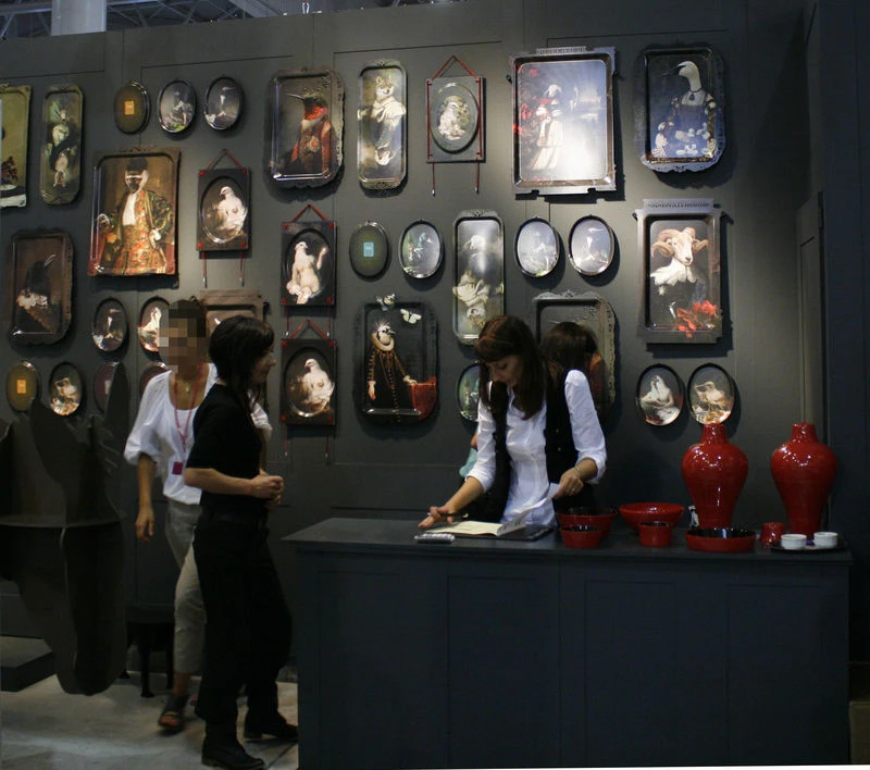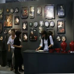 The Ibride creations associate with talent graphic design and object design. Very original, this service top is also a framework as one can put to the wall. It seizes himself portraits decorated with moldings and embroidered families manners worsens. Hung to the wall, this is a superb picture to the romantic perfume. Put on the table, this is a very deco top !