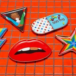 Trinket is a collection of trays with a Pop Art feel. Each of these accessories, also acting as a storage compartment, instantly brings new life to your interior. This collection stands out for its flashy colours, different geometric shapes and quirky, unconventional patterns: a pillbox, a stripper, a sensual mouth, a flash and a star in the colours of the rainbow. Playful yet chic, these porcelain trays are also adorned with gold details. Very practical, Trinket is your perfect partner to hold your small everyday objects, your biscuits or simply to liven up your decoration!