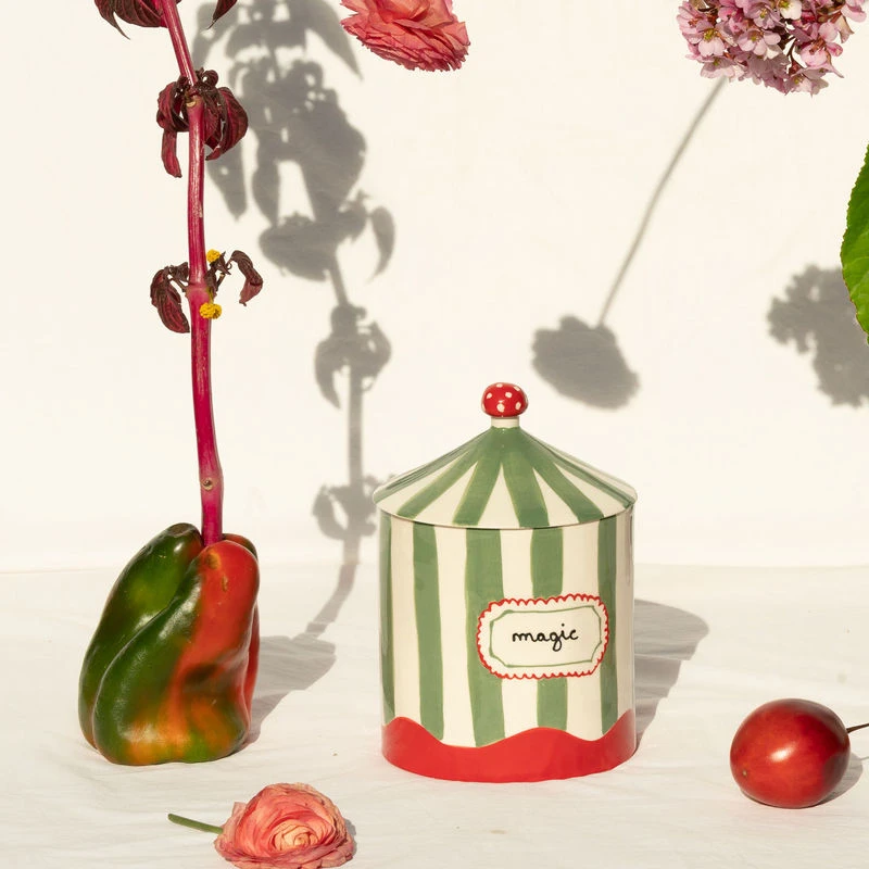 With a true touch of genius, French creator Laetitia Rouget works with different mediums: ceramic, paint on canvas, textile… Her cheeky universe is populated with bold illustrations and confident colours. Her creations are imbued with a generous helping of optimism, creating a delightful universe. Each of these pieces is overflowing with humour and is often inspired by nature or the human body, designed as a way of sparking conversation, laughs and joy, often through mischievous inscriptions. For each sandstone piece in the collection, a prototype is made by hand in the Laetitia Rouget studio. Each piece is then made in Portugal and painted by hand with plenty of love and mischief by artisans who faithfully reproduce the artist’s illustrations. LAETITIA ROUGET’S SOURCE OF INSPIRATION: “The main artist who have inspired me are Grayson Perry, Hylton Nel and, of course, Matisse! That said, I’m also inspired by a lot of up-and-coming, young creators, like Luke Edward Hall, Rose Electra, Isabella Cotier and Oscar Piccolo. “Books and nude drawings are always a great source of inspiration for me, but sometimes I can also find a lot of inspiration in random things. I love telling stories and meeting people from different cultures through travel. Travelling has always been an excellent starting point for all my projects. Seeing as many different cultures, the different ways in which countries and populations live, bright colours, scents, and the effect that that has on the senses has massively inspired my work.”
