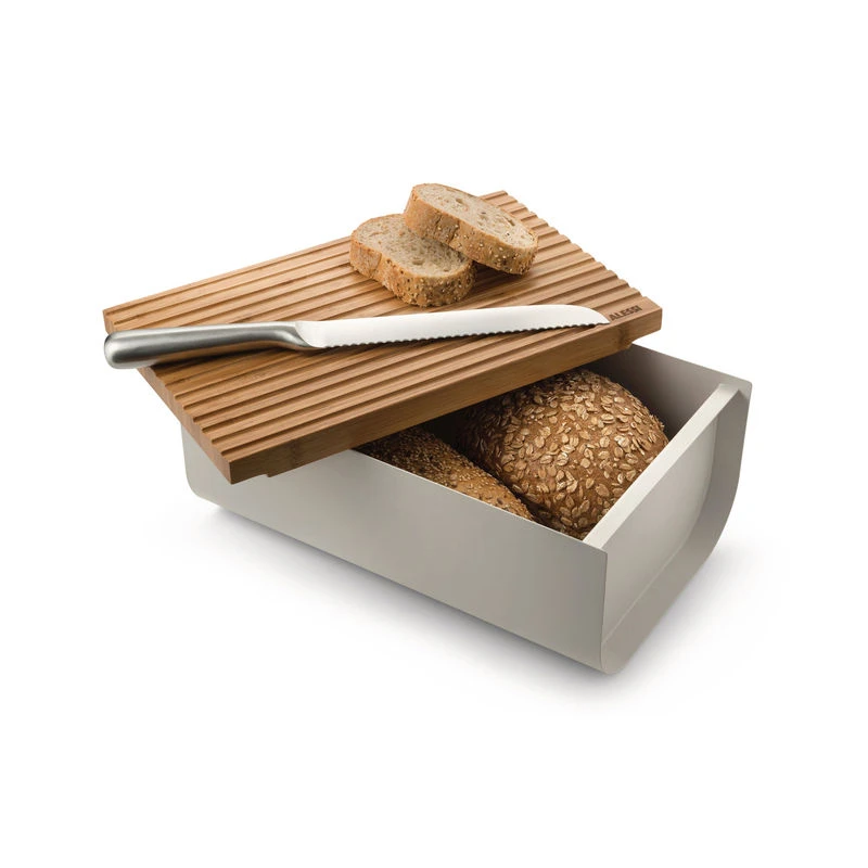 | Characteristics | The lid serves as a chopping board (with ribs to catch crumbs) and a serving platter (to bring cups and table spoons) – Side hole in the bread bin which allows the humidity required for preserving bread through – Non-slip feet |