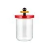 The Swiss studio, BIG-GAME, offers a versatile object designed to accompany an everyday activity; easting bread, by highlighting its ritual and convivial nature. This elegant and contemporary colourful steel bread bin is ideal for storing your bread and keeping your kitchen tidy. The side hole allows in the humidity necessary for optimal bread preservation (for perfect preservation it is advisable to put the bread in a tea towel or paper bag before putting it in the bread bin). The clever, natural-bamboo lid also serves as a chopping board to slice your bread. The ribs catch the crumbs. To slice the bread, you can leave the top on the bread bin or place it on the table. Little non-slip feet placed on the base of the top ensure its stability when it is removed from the bin and protect the worktop that it is placed on. Mattina can also be used to bring breakfast to the table. The chopping board can be used as a tray to put cups, spoons and a sugar bowl on… In addition to bread, the box can contain other breakfast foods. The upper part of the bread bin is equipped with two handles which make it easy to move. The shape of the lower part of the top was designed to fit perfectly on top of the container, in order to make it stable and secure, even when it is used as a board. The designers from BIG-GAME studio explain: “Mattina is a practical bread bin with a bamboo, resistant chopping board which serves as a lid. Starting with advice from bakers who recommended rolling up the bread in a tea towel or paper and storing it in a box that is not completely hermetic, we designed this metal bread bin with holes to control the humidity and preserve the bread in an ideal way. Equipped with handles, the bread bin is also very pleasant to bring to the table and to share good bread, an essential food for every meal.”