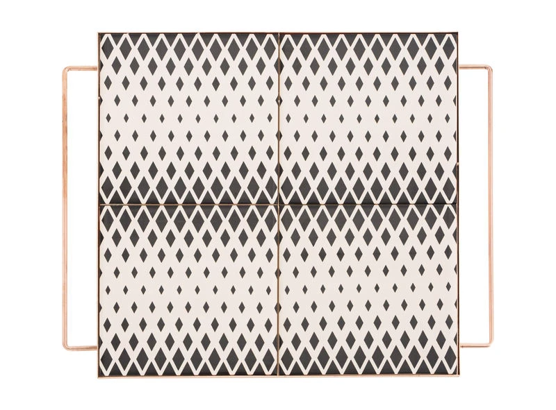 The MIX & MATCH collection designed by ceramic artist Flavia Del Pra and manufactured in Brazil by GAN reinvents the classic serving tray in an innovative approach by mixing traditional elements. “The trays can also be used as platters, as side tables for serving and presenting food and pedestals for drawing attention to an art work or an exquisite plant,” according to the designer. The trays are presented in nine different models and are made from a copper plated aluminium structure which forms a base for the hand crafted ceramic pieces. The different sizes and patterns of the collection allow infinite combinations, offering the possibility of customising spaces using different colours and geometries, providing a sophisticated and playful accessory. Flavia Del Pra combines new technologies with manual processes for the design of these different tile patterns. “The pieces are 100% crafted. I prefer to focus my attention of pieces that are hand made: warm, unique and subject to imperfection like all human made work”, explains the designer.