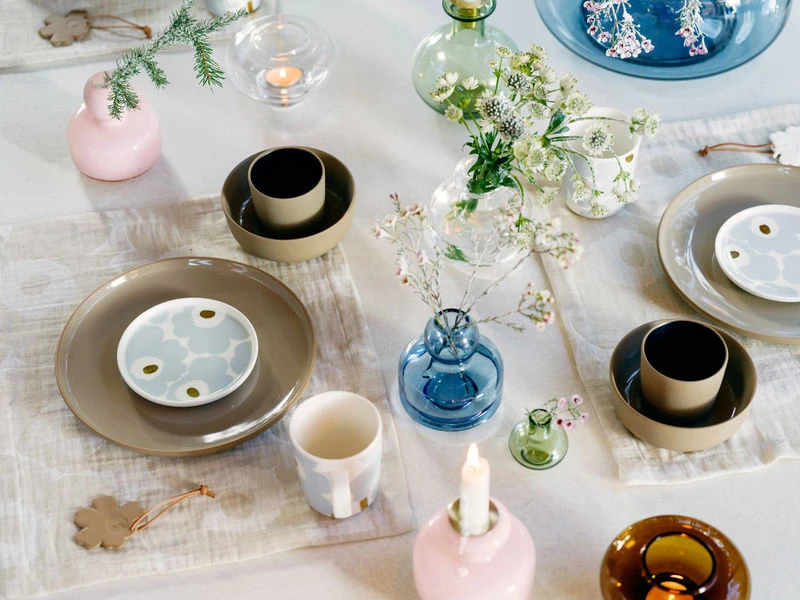 Cheerful, chic and graphic, Marimekko’s tableware collection brings new life to your home! You can compose your own coordinated service, or mismatch cups, plates and bowls to create your own style! This brown stoneware bowl has a double finish: the enamelled interior is shiny, the rough exterior is matt. Made to last, Marimekko cups, mugs and bowls are made from ceramic stoneware and their patterns are designed to not fade over time. Compatible with the demands of modern living, all items in the collection are microwave, dishwasher and freezer-safe. Created in 1951, Marimekko is a state of mind, a way of life based on creativity, freedom of spirit and inventiveness. Its fame dates back to 1960, when Jackie Kennedy made several public appearances in Marimekko dresses. From that moment, the brand was immensely successful, and still is, with a range of clothing and decorative accessories in bright colours, for an inspired house!