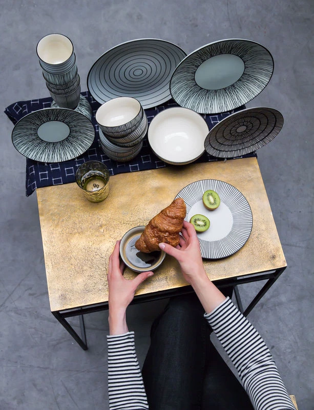 Cheerful and chic, the collection Pastel Afresh is decorated by hand. It comes in 4 ultra-graphic patterns that bring rhythm and elegance to your table!