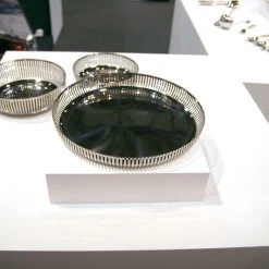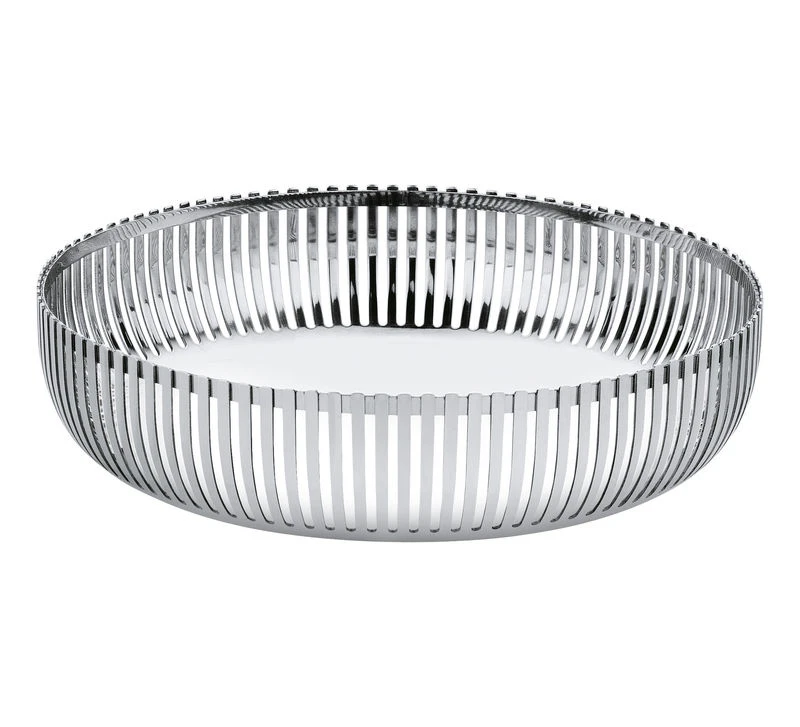 Basket in 18/10 stainless steel. The basket, designed by Pierre Charpin, on the other hand, whose use is so evident, is an essential part of our domestic landscape both in the kitchen and in the sitting room, a presence that reminds us of an ancient, pre-industrial past, bringing back the old “gallery trays” trays from the 18th and 19th century to mind.