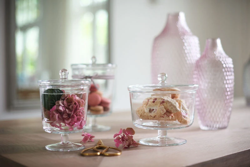 A delicious retro charm for this sweet jar on a stand in transparent glass. It presents all your treats with elegance: candies, shortbread, small cakes… Perfect for bringing a chic rustic feel to your kitchen. It can also decorate your dressing table or the shelf in your bathroom, holding your cotton discs, elastics, and all your small accessories.