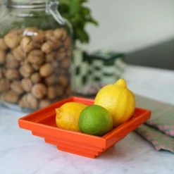 A bold, geometric shape has been used for this ceramic coupe, designed in vibrant colours. It’s used to present food or as a trinket dish in an entrance hall.