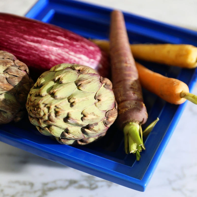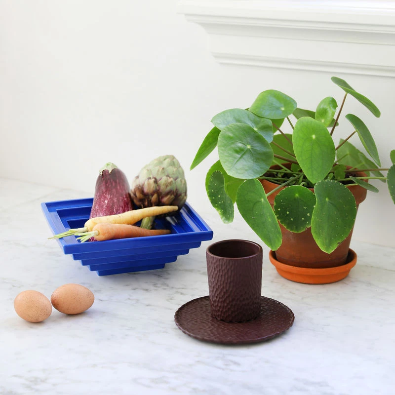 A bold, geometric shape has been used for this ceramic coupe, designed in vibrant colours. It’s used to present food or as a trinket dish in an entrance hall.