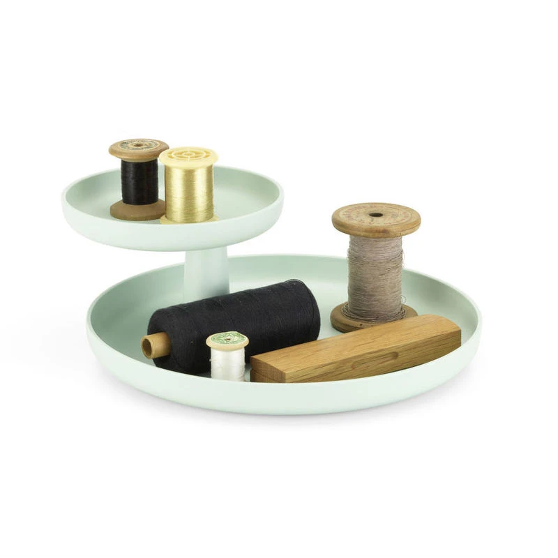The works of the famous British designer Jasper Morrison reflect his "super normal" design philosophy: Instead of looking for unusual solutions, Morrison takes tried and tested designs and gives them a new identity by reinterpreting, developing and refining them. With the Rotary Tray in 2014, Jasper Morrison gave the classic tiered tray a contemporary new look. With its clean lines and its wide range of colours, the Rotary Tray naturally complements all furnishing styles and can be used for a wide variety of functions. Whether in the living room, bathroom, hallway, office or children's bedroom, the Rotary Tray is a decorative way of organising the room. It can also be used to present food in an elegant and original way. The Rotary Tray is made of ABS. The small top tray can swivel.