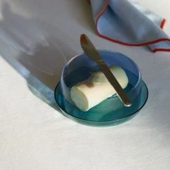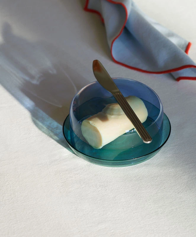 A beautiful play on colour and transparency for this set, including a light blue bowl and an aqua-green saucer. The simple shapes accentuate the cheerful and on-trend colour palette. Borosilicate glass is very resistant to impacts, and is dishwasher- and microwave-safe. This set is perfect for elegantly serving various small dishes or fruit, grapes, or olives: the saucer is perfect for collecting stones and seeds. The bowl can be used as a cover or separately.