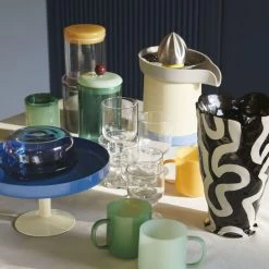 A beautiful play on colour and transparency for these airtight jars. The minimalist shape is brought up to date by the cheerful, contemporary colour palette. Borosilicate glass is very resistant to impacts, and is dishwasher- and microwave-safe.