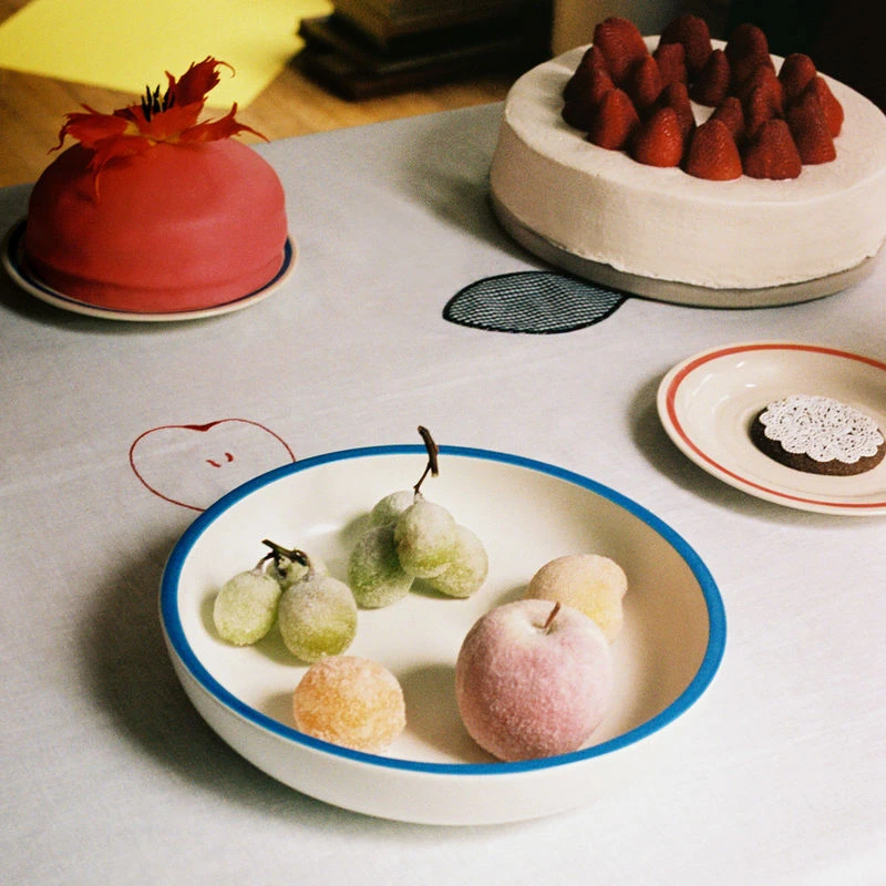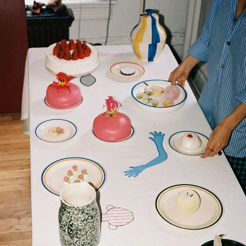 An Egyptian based in New York, the young chef with the extravagant look Laila Gohar offers her unique culinary experiences all over the world. Her dishes, which look like extravagant sculptures, echo the settings in which they are served. Mixing artistic performance and cooking, her immersive culinary experiences blur the lines. Laila Gohar uses food both as an artistic medium and a communication tool. Through her convivial, multisensory “edible events”, she explores the nature of human interactions. In collaboration with Hay, Laila Gohar has developed her first collection of tableware made up of a family of heterogeneous objects intended for preparing and serving meals: bowls, plates, tablecloths, vases, etc. The collection is called ”Sobremesa”, which refers to the Spanish tradition of relaxing around the table at the end of the meal, enjoying the company of your guests. Through this collection, Laila Gohar shares her creative, sensitive and surprising vision of cooking. “Sobremesa” celebrates the joy of hosting – finding ingredients, cooking, setting the table and, finally, sharing precious moments over a wonderful meal with family and friends. Joyous and colourful, the multi-coloured pieces draw their inspiration from different cultures and let you create festive, slightly eccentric tables: a great way to acquire the quirky, trendy atmosphere that characterises Laila Gohar’s cuisine so well. The Sobremesa porcelain dishes are available in a huge range of sizes and colours, either in solid tones or with a contrasting coloured stripe. The dishes can be combined and stacked for an elegant presentation option. They can be used for cooking or table service. They can also be used to store fruit or vegetables in the kitchen. They are dishwasher-, microwave- and oven-safe.