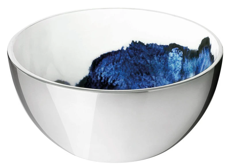With the new Stockholm collection of centerpieces, Swedish designer duo Bernadotte&Kylberg has created an iconic series of timeless vases and bowls with bold, artistic patterns and a mix of enamel and aluminum. Stockholm Aquatic is inspired by the full pallet of blue nuances reflected in the Baltic sea throughout the year. The pattern makes a clear reference to the waves breaking on the sea. Artistic design and patterns, Simple yet iconic and timeless shapes and forms, Each pattern is handmade thus differences can occur. Aluminum with enamel. Can be cleaned with dish soap and a soft cloth (not dishwasher safe).
