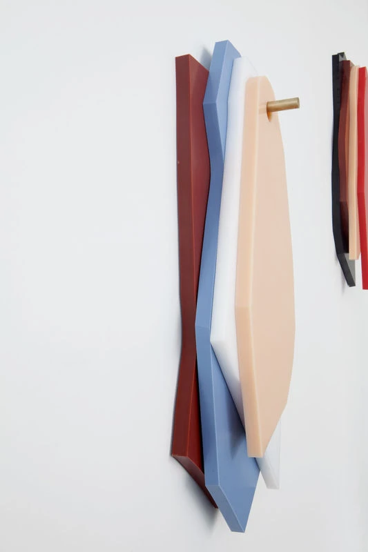 Known as Muller Van Severen, the Flemish design duo Fien Muller and Hannes Van Severen work at the intersection of art and design. They are among the most prominent creators of the moment. From galleries to museums via collectors, design enthusiasts and design houses, everyone loves their minimalist, colourful creations, timeless and joyful. The Flemish design duo Muller Van Severen are enamoured of the polyethylene material they regularly use in their work: “Unlike many other plastics, polyethylene has a soft feel and a certain sensitivity.” Initially, Muller Van Severen planned to simply create a polyethylene sculpture. Along the way, the project was transformed: the sculpture became functionalised to create a set of cutting boards which, once superimposed and hung on the wall, can be displayed like a genuine painting. A brass hook is included to hang the boards on the wall. The boards have various organic, unstructured, irregular shapes. They come in stunning combinations of bright, bold hues. Fien Muller explains: “Although it seems like we created these shapes on a whim, they’re well thought out one by one. It was a careful selection process to decide which corners and edges would be visible and which would be layered.” When arranged, hung on top of each other against the wall, the mixture of varied shapes creates an abstract work of coloured lines. Fien Muller and Hannes Van Severen, ex-sculptor and ex-photographer respectively, infuse each of their pieces with a touch of poetry. Hannes explains: “Design is linked to function. We come from the visual arts. So we’re just trying to create sculptural furniture to occupy space. Art or design, creation takes place the same way … and provides the same satisfaction. Poetry is possible even in the industrial”, concludes Fien.