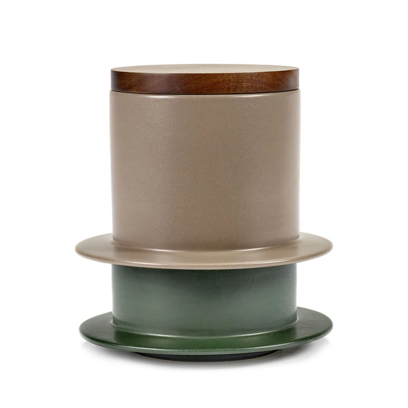 Modernist designer with a minimal, refined style, Glenn Sestig is the new Flemish master of design. For Valérie Objects, he designed “Dishes to Dishes”: a collection of tableware that reveals his taste for volumes and materials. The resulting design is hybrid, with a succession of different materials, solid and empty spaces that break the monolithic vision. Natural elements such as Acacia wood, sandstone and glass play a perfect symphony there, mixing craftsmanship, serenity, decorative aesthetics and durability. All the pieces in the Dishes to Dishes collection have the same shape: a clean cylinder mounted on a disc-shaped base. This simple yet expressive shape comes in different sizes to fulfil different functions: plates, bowls, dishes. The elements overlap, sumptuously creating architectural structures. A multitude of compositions are possible. In this project, characterised by a sculptural approach, the elements come together in a thousand and one ways. You can stack them, or you can also freely place them next to each other… Make way for fun, for evolution, for change! Glenn Sestig: “This collection easily adapts to any interior design style. The particular shape allows for elegant stacking of containers, where each base forms the lid of the lower part.” The containers can be closed with acacia wood lids sold separately: – The Large lid is suitable for the wooden Dishes to Dishes bowl Ø 35 cm – The Medium lid is suitable for the Dishes to Dishes glass bowl Ø 29 cm -The Small lid is suitable for all Dishes to Dishes containers with a diameter of Ø 20.5 cm
