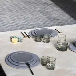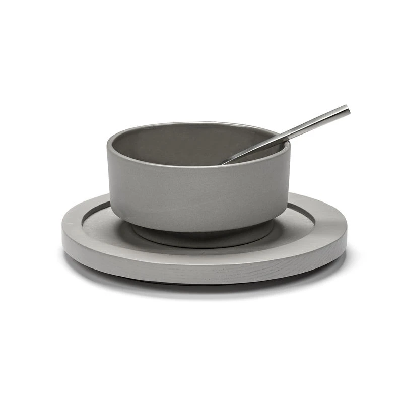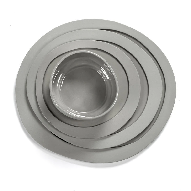 Dutch designer Maarten Baas is known for his iconoclastic, whimsical creations that disrupt traditional typologies. Through his controversial experimental work, Maarten Baas overturns preconceived ideas. He has forged his own world, happily pushing the boundaries of design to show another reality made up of strangeness, optical effects, illusion, play. In collaboration with the Antwerp label Valérie Objects, Maarten Baas has created a complete set of tableware : objects with assumed irregularities and a “handmade” feel. As ever, Maarten Baas likes to jostle the lines, create irregularity and asymmetry to make his objects more human. Named “Inner Circle”, his tableware collection refers to our inner circle, those with whom we like to share great times around the table, as well as the design that’s at the centre of the collection: the circle. Maarten Baas explains: “I discovered that all tableware is made up of circles within circles.” Maarten Baas favoured spontaneity over perfect symmetry by drawing spontaneous, irregularly shaped circles freehand. They were literally translated into tableware, making these objects the materialisation of imperfect concentric circles. Each object thus declines the shape of the circle roughly drawn by hand. In a world where machines are made to produce straight lines, Maarten Baas’ irregular shapes are a real technical challenge to achieve. This range of tableware favours naturalness and irregular shapes rather than perfection, communicating an artisanal idea. The asymmetrical curved, soft lines break with our very strict, linear everyday environments. Far from the codes and usual wise rectilinear lines, the irregular, imperfect organic shapes, the rugged contours of these pieces halfway between design and art really stand out. Once placed on the table, these items inject an unexpected, calm, authentic atmosphere into the decor.