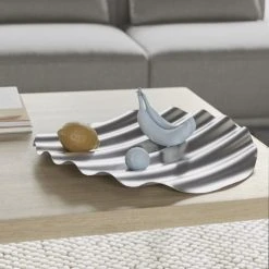 A very strong visual impact for this large sculptural tray. Inspired by the ripples of a wave, Wave is made from a thin steel plate. The raw appearance of the metal contrasts with the refinement of the waves that create dynamic beauty. Remarkable work on the material and the development of forms. This large tray / bowl will delicately wrap items placed inside… Multifunctional, Wave can hold fruit in the kitchen or serve as a trinket tray in an entrance. Coming from an intercultural experience in Italy and South Africa, the works of the design duo Cara Judd and Davide Gramatica are characterised by a permanent search for materials, techniques and processes linked to different regions.